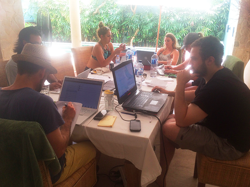 Well, the wheels of industry don’t stop turning just because our lot get stuck in Bintang Central. So, it was onto scooters and into “transport” to scrounge laptops, 4G hubs, power cables (and brekky) to set up a makeshift studio in the back of one of our villas. Hey presto, we were back in business… Well, almost. Working over a remote connection back to the office isn’t the speediest.